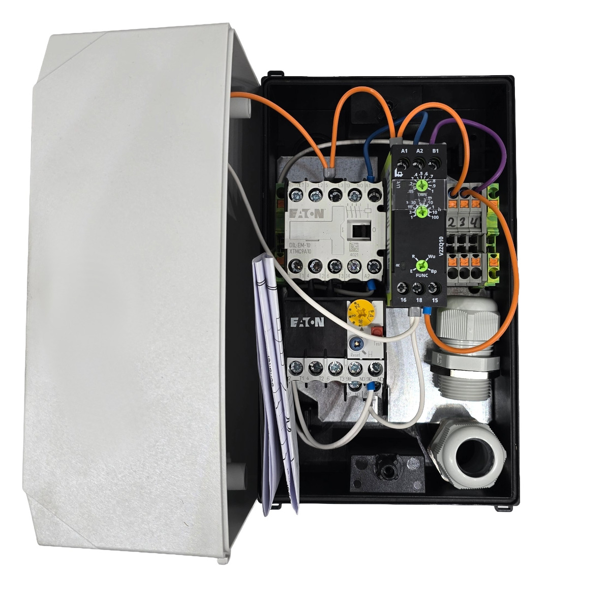 Komplett verdrahtete Milchpumpensteuerung 400 V mit Zeitrelais und Motorschutz