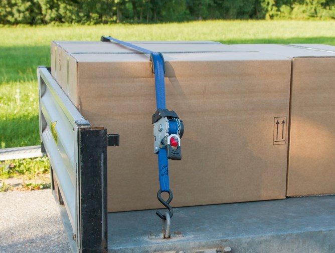 Zum schnellen Aufrollen des Zurrgurtes einfach Knopf drücken