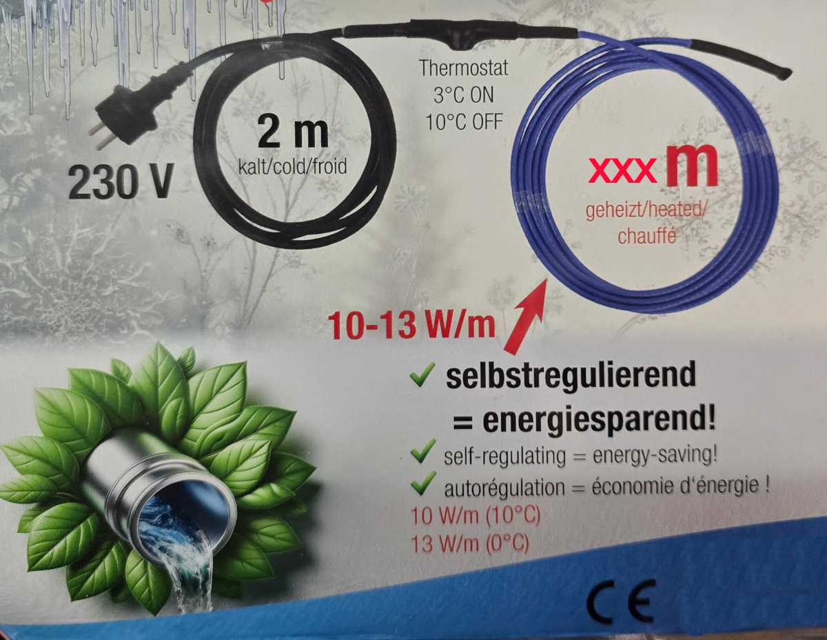 | Länge Heizkabel | Frostschutz-Heizleitung (Typlänge) |