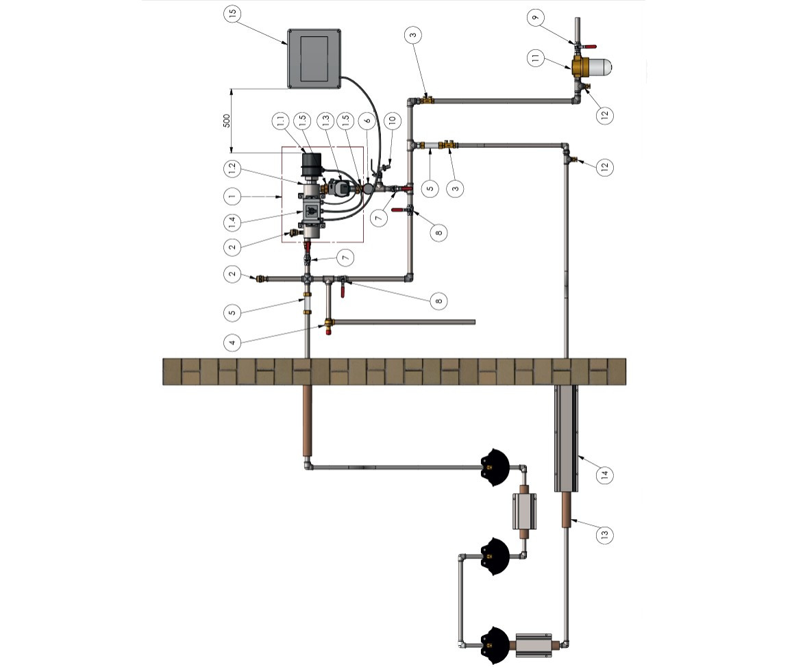 - Für Ringleitungen bis 250 m bei ¾" Rohrdurchmesser