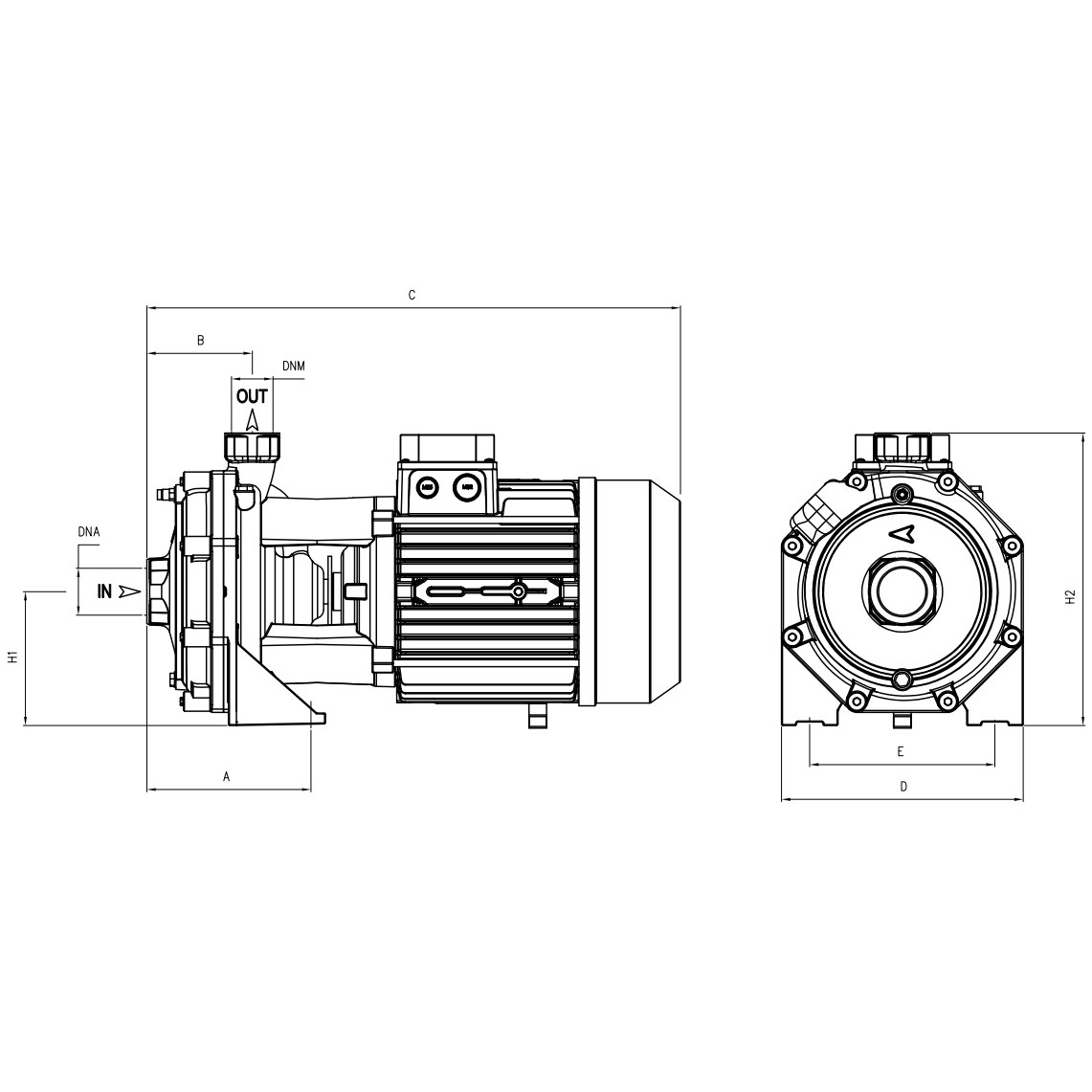 - Anschlüsse: Saugseitig (DNA) 1" 1/2 G / Druckseitig (DNM) 1" 1/4 G.
