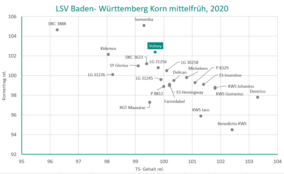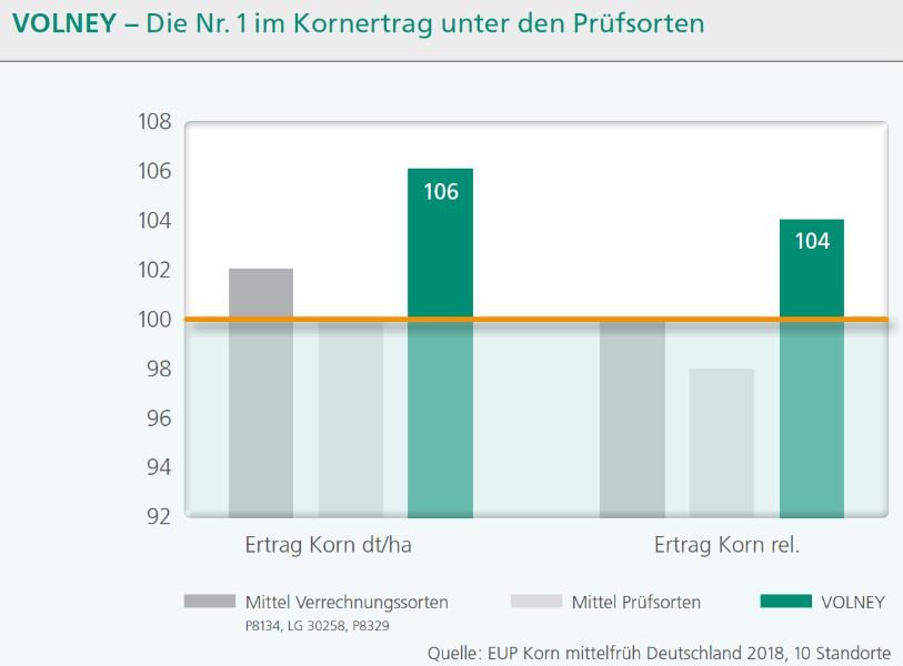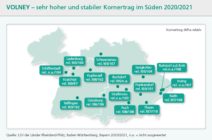 Mehrjährige Ertragsstabilität zeichnet VOLNEY aus. Mit der BSA-Höchstnote 9 im Kornertrag konnte sie auch 2021