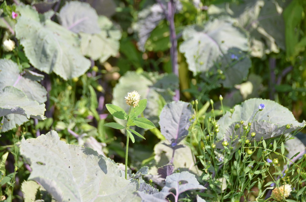 Die Mischung kombiniert Sorghum Sommerwicke Ramtilkraut Öllein Felderbse Alexandrinerklee Abessinischer Kohl.